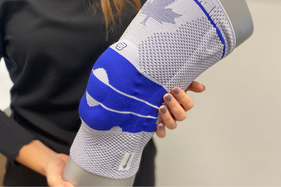 That same quality and support is what Bauerfeind braces can provide in your everyday life. For instance, if the client needed support for his knee injury flare-up, he could use Bauerfeind’s GenuTrain® orthopedic brace.
